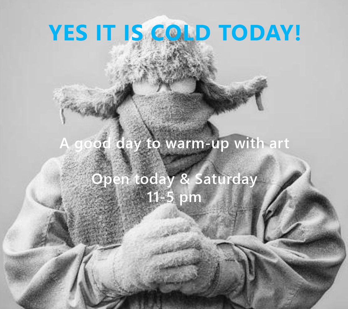 Yes, it is cold outside! A very good day to warm-up with art. Open today and Saturday 11-5 pm
